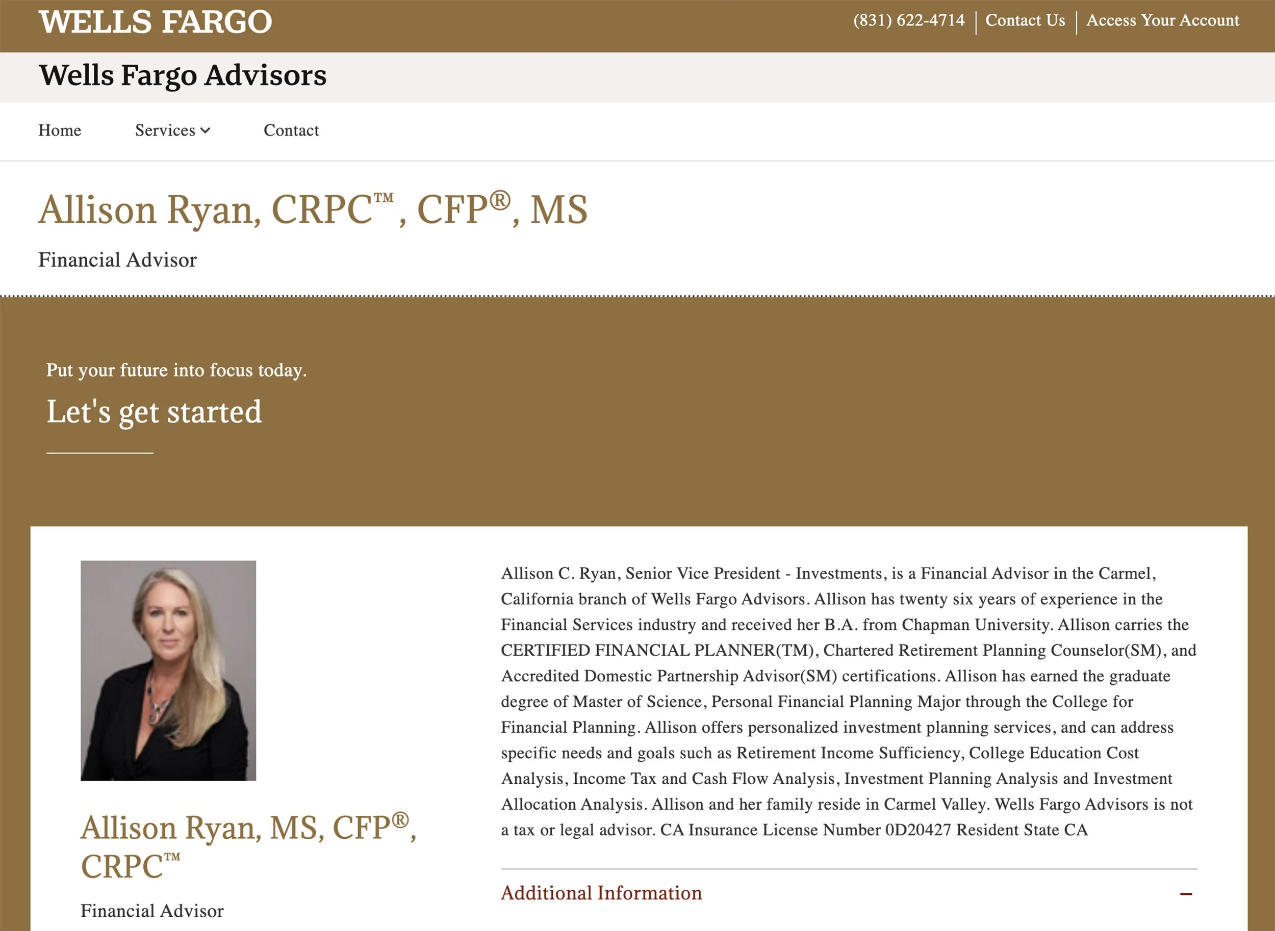 A strong headshot is not just about how it looks in a gallery — it is about how it performs in the real world. This image is currently featured on Allison’s Wells Fargo Advisors profile, helping create a polished and trustworthy first impression for clients visiting her site. When your headshot is aligned with your brand and used consistently, it becomes a key part of how people connect with you professionally.
