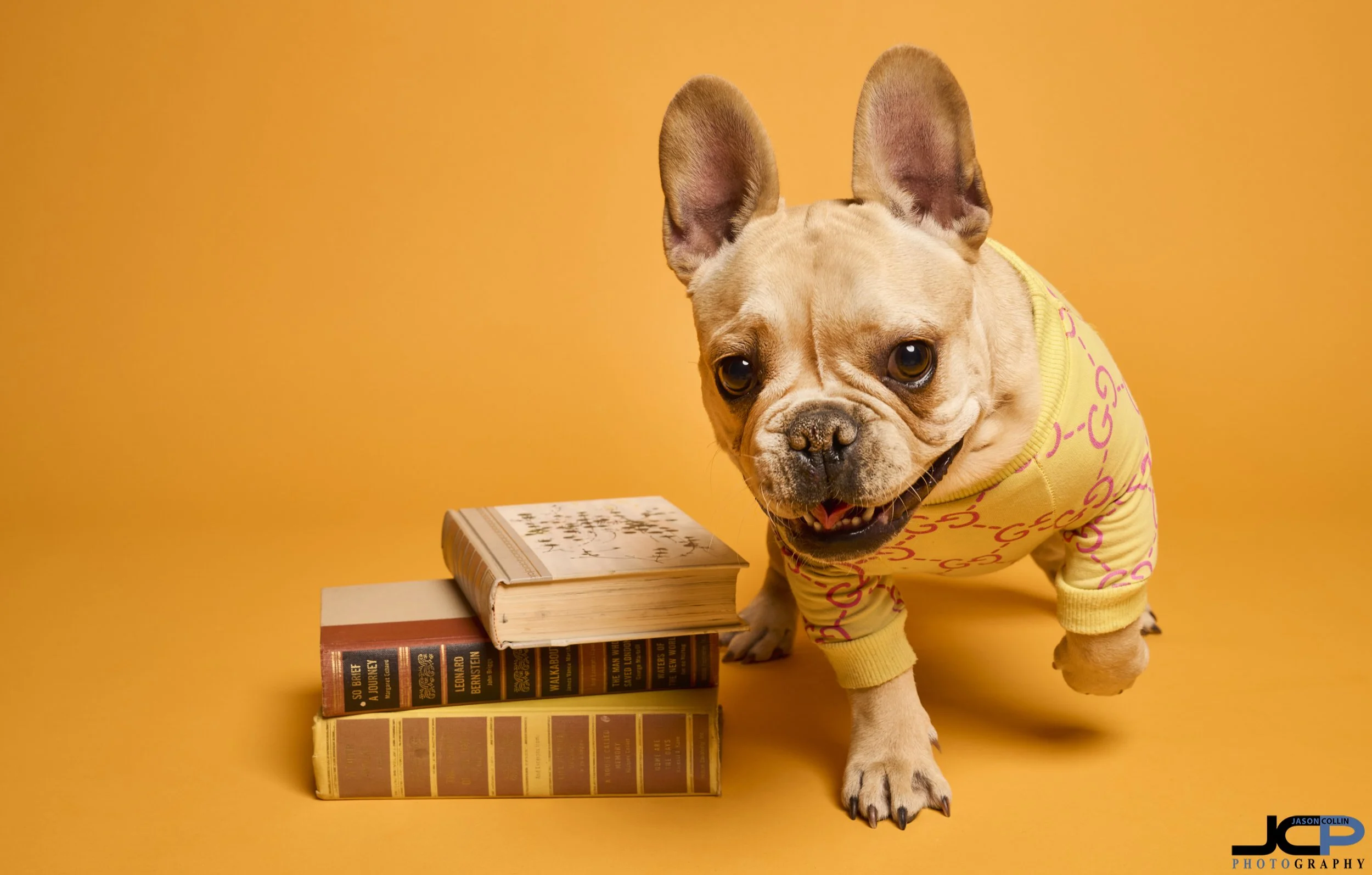 Returning client Miguel of El Paisano Supermarket whom I have done several food photography shoots for in the past, had a very different photo shoot idea in mind this time. He wanted social media marketing photos of his French Bulldogs made on a colorful orange background. You do not need to do much besides feature a tiny French Bulldog puppy to make an attention grabbing social media photo, but putting her in a dog “Dogs Rule” dog food bowl and then having the other two dogs pose with books and glasses for props while wearing sweaters, and now Miguel has a lot of high impact photo content to use on social media. Thank you Miguel for continuing to choose me as your photographer!