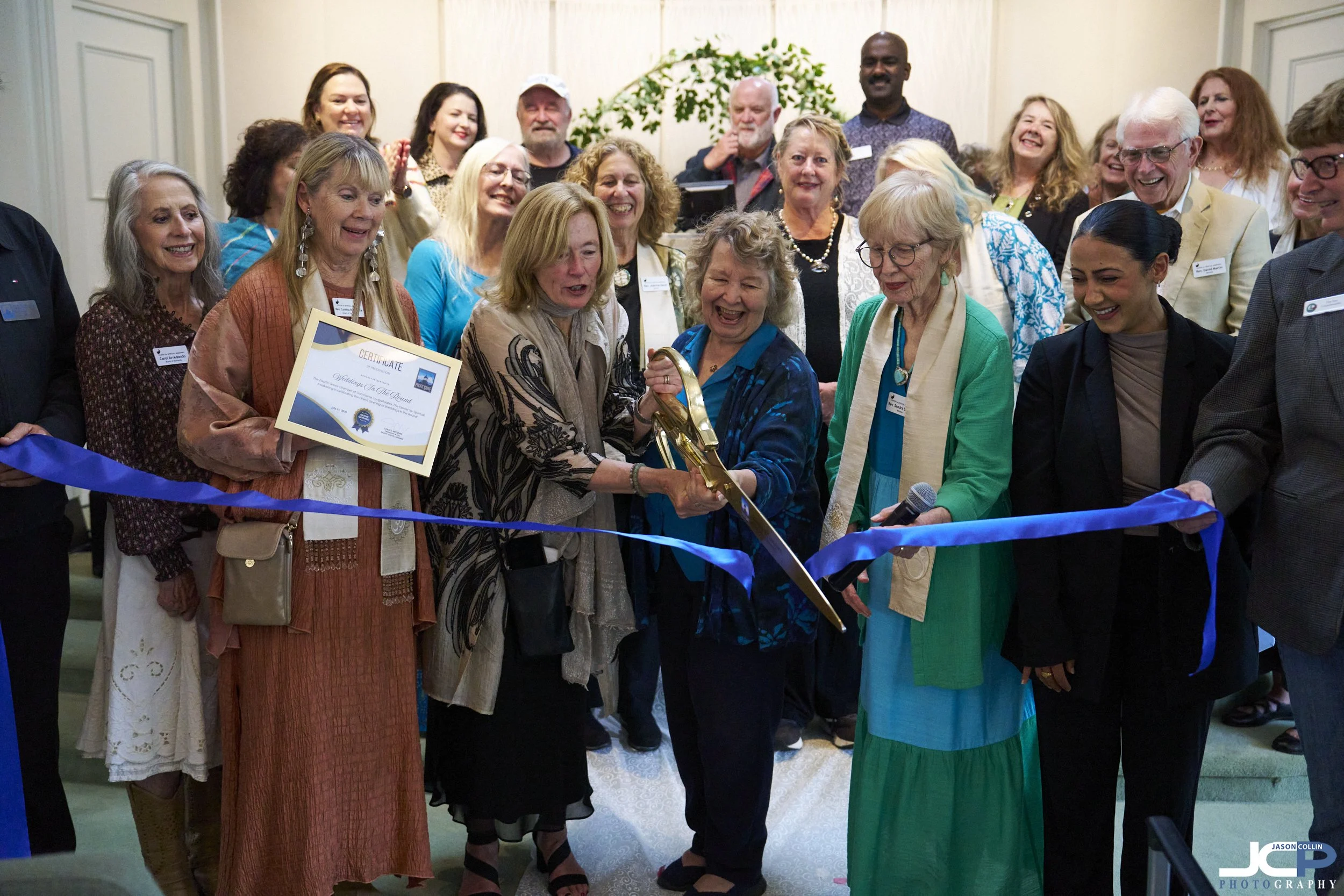 Cutting the ribbon at Weddings in the Round in Pacific Grove