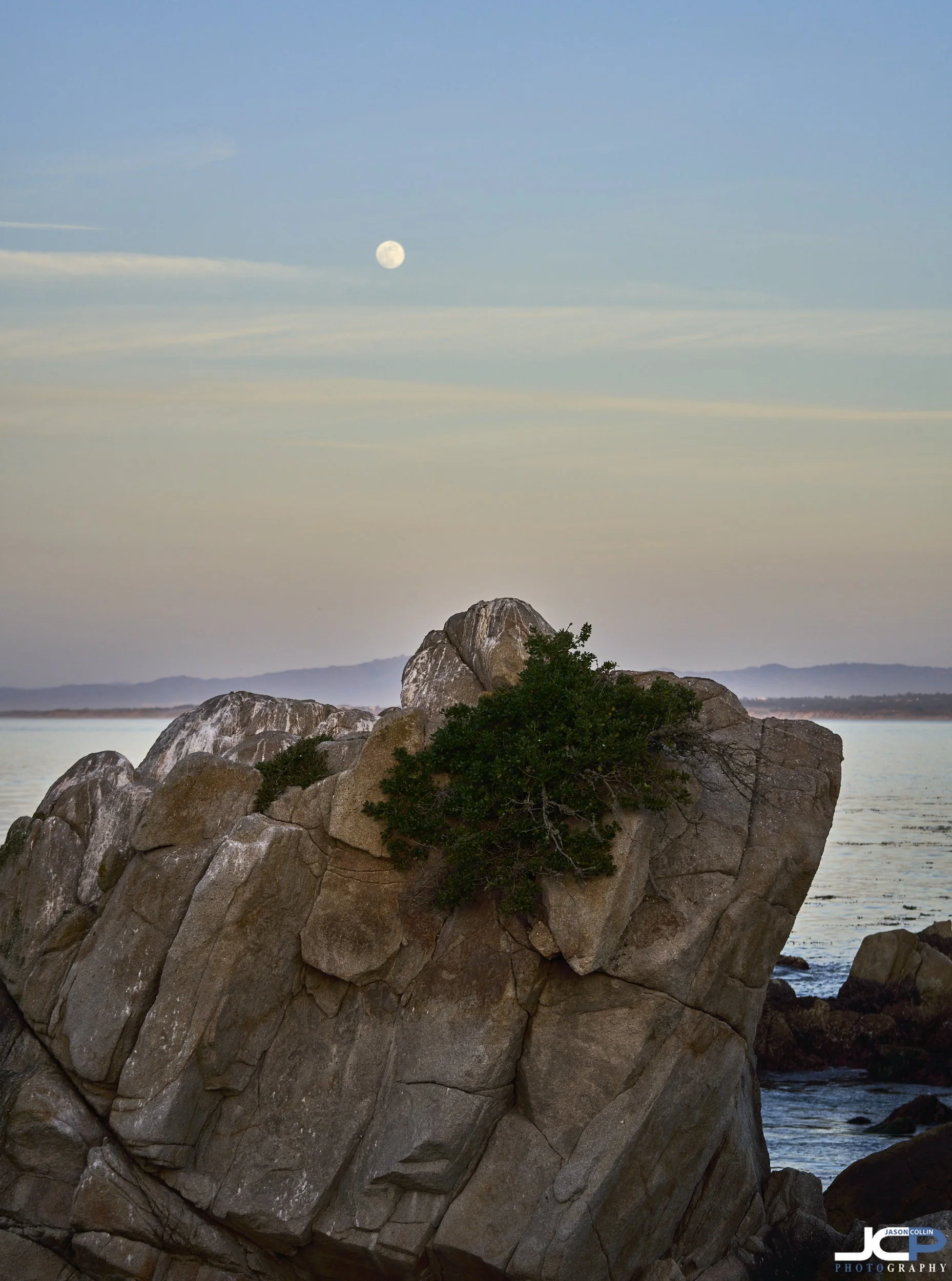 On Saturday evening I took my camera out along the Pacific Grove coast to photograph the winter moon as it rose above the horizon. There was no assignment, no client brief, and no rush — just the familiar quiet of the coastline as the light slowly faded. The winter moon has a softness to it that feels different from summer evenings, with cooler air, calmer colors, and a slower pace that invites you to look longer.